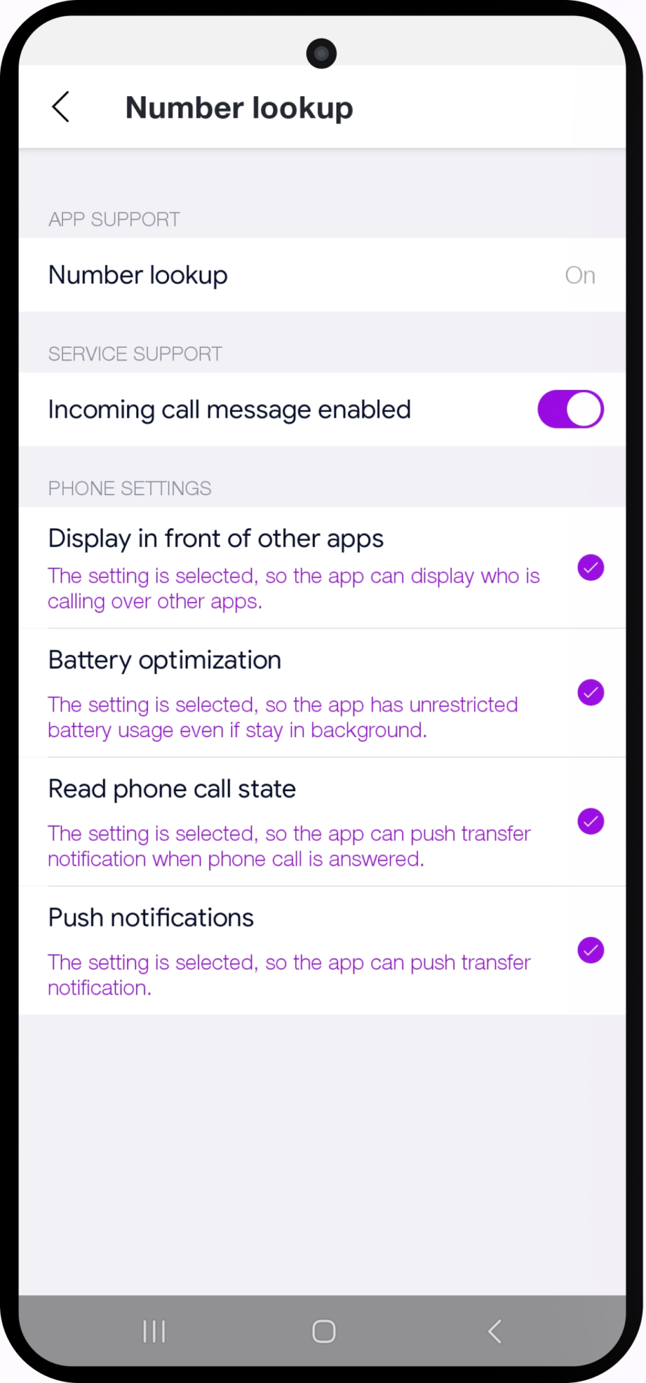 Number Lookup is activated directly in the Smart Connect mobile app.