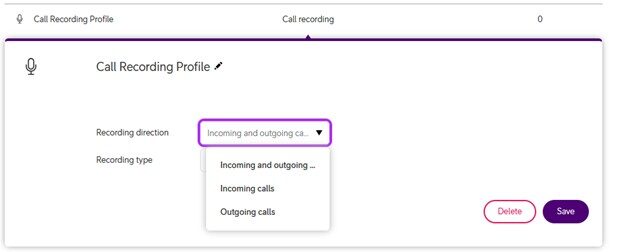 - Select Recording Direction in the dropdown: Incoming and outgoing calls, Incoming calls, or Outgoing calls.